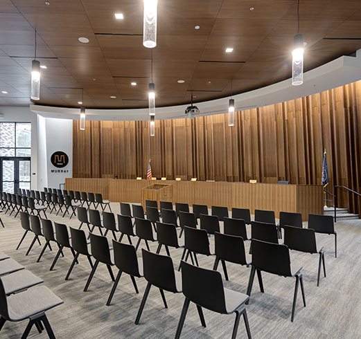 Layton worked with Murray City to build the first city hall in the community’s history. The building includes a three-story city hall comprising administration offices and council chambers. The facility also houses the police department with temporary holding spaces, evidence processing, crime lab, and secured storage space. The exterior features curtainwall, storefront glass, brick, and copper panels. The interior includes stone and carpet flooring, wood paneling, and high-end finishes throughout.
