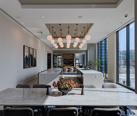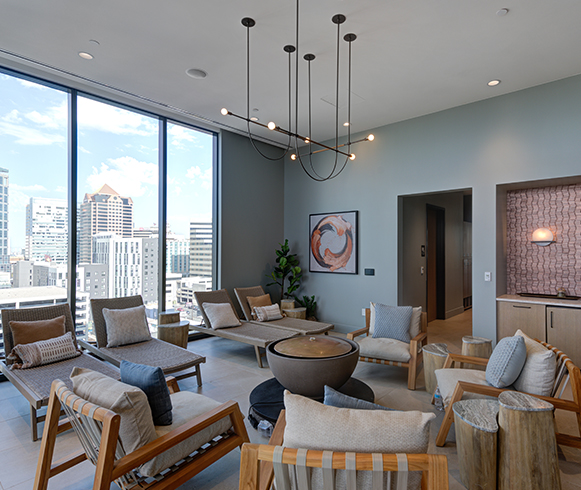 With the Wasatch Mountains to the east and a vibrant downtown westward, The Worthington Residences isn’t just a place to live, it’s a visual feast of breathtaking panoramas. The Worthington features 31 stories of and 359 luxury residential units; A 12th-floor elevated pool and spa deck featuring a lighted glass rail system, Sophisticated flush cabinet doors with hidden pulls for clean, modern spaces; Innovative three-celled core installed with self-climbing form work, Four-story, above ground parking, offering residents 359 stalls.